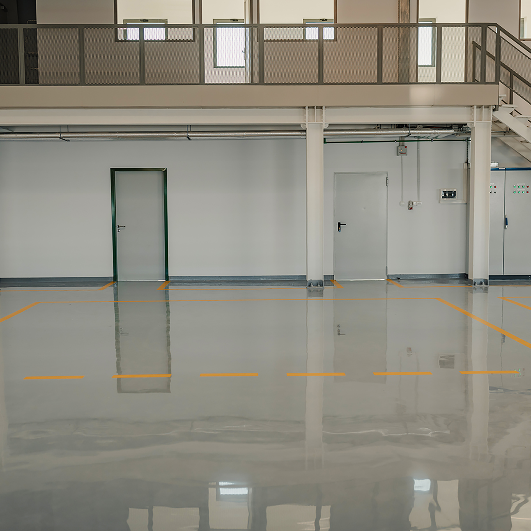 Nossas soluções de epóxi 100% sólido representam alternativas excepcionais para áreas de processamento em ambientes secos que exigem uma estética diferenciada, especialmente em locais com tráfego moderado. Sua formulação e técnicas de aplicação proporcionam um acabamento suave ou brilhante, com uma camada densa e uma resistência excepcional a impactos. A espessura da aplicação varia de 1 a 3 mm, adaptando-se às diferentes necessidades de tráfego, durabilidade e às condições do substrato. Este produto é especialmente recomendado para aplicações que requerem um acabamento liso, sem emendas, impermeável e resistente a manchas.